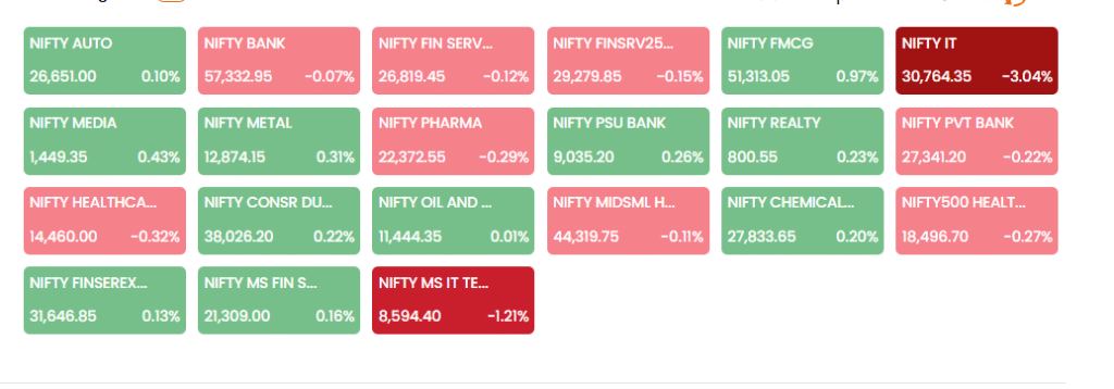 निफ्टी के गेनर्स में Trent Limited, Nestle India, Hindustan Unilever, Adani Enterprises और Jio Financial Services शामिल रहे. वहीं, आईटी शेयरों में दबाव देखने को मिला, जहां HCL Technologies, Tech Mahindra, Infosys, Tata Consultancy Services और Wipro टॉप लूजर्स में रहे.
