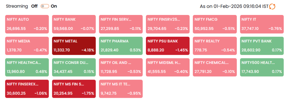 बजट के दिन बाजार में भारी उतार-चढ़ाव, निफ्टी 25300 के नीचे, मेटल शेयरों में भयंकर बिकवाली