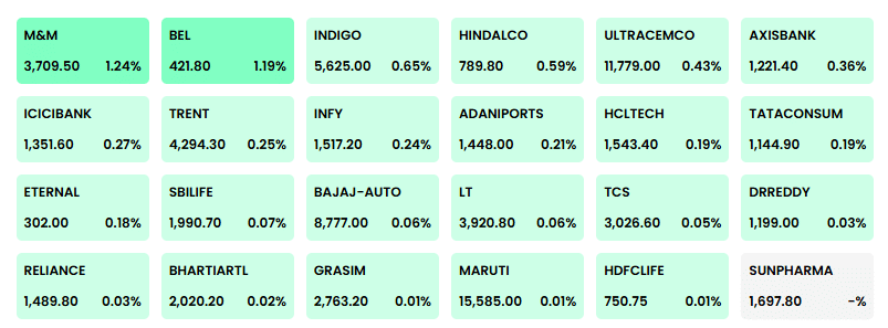 सेंसेक्स 319 अंक की बढ़त के साथ 83,535 के स्तर पर बंद हुआ, जबकि निफ्टी भी 82 अंक चढ़कर 25,574 पर पहुंचा. सेंसेक्स के 30 में से 19 शेयरों में तेजी दर्ज की गई. इंफोसिस के शेयर ने सबसे बेहतर प्रदर्शन करते हुए 2.5 फीसदी की बढ़त दर्ज की. वहीं, ट्रेंट का शेयर 7.41 फीसदी गिरकर बंद हुआ. इसके अलावा जोमैटो और पावर ग्रिड के शेयरों में भी कमजोरी देखने को मिली.