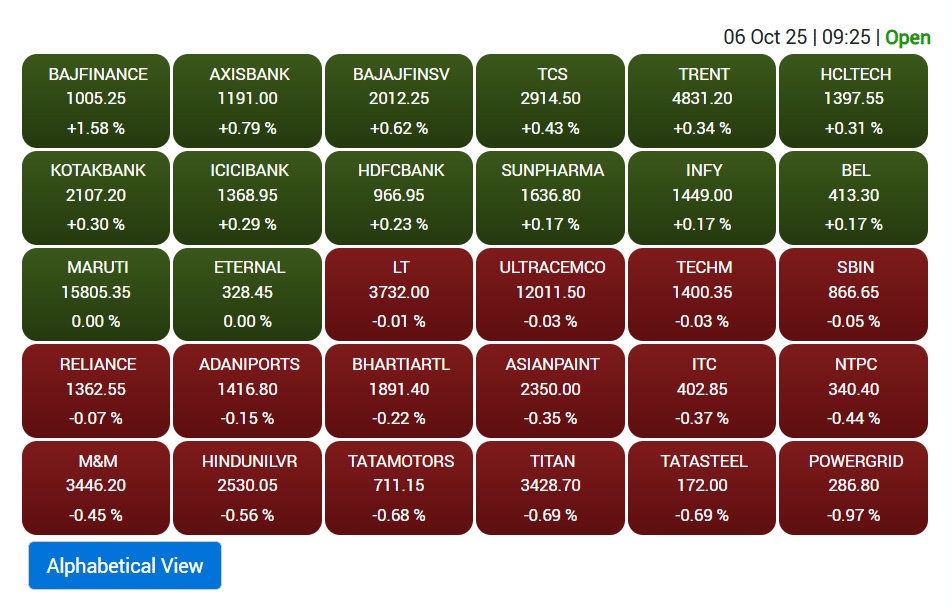 आज शेयर बाजार में Bajaj Finance, HDFC Bank, Axis Bank, Bajaj Finserv, HCL Tech, ICICI Bank, Kotak Bank, TCS, Trent और Infosys जैसे दिग्गज स्टॉक्स में खरीदारी देखने को मिली, जिनमें 1 फीसदी तक की तेजी दर्ज की गई. हालांकि, Tata Steel, Titan, Tata Motors, HUL, Power Grid, M&M, NTPC और Asian Paints में मुनाफावसूली के चलते बाजार की तेजी पर थोड़ी लगाम लगी. मिडकैप और स्मॉलकैप शेयरों में हल्की तेजी रही, जहां Nifty MidCap इंडेक्स 0.11 फीसदी और Nifty SmallCap इंडेक्स 0.08 फीसदी चढ़ा.
