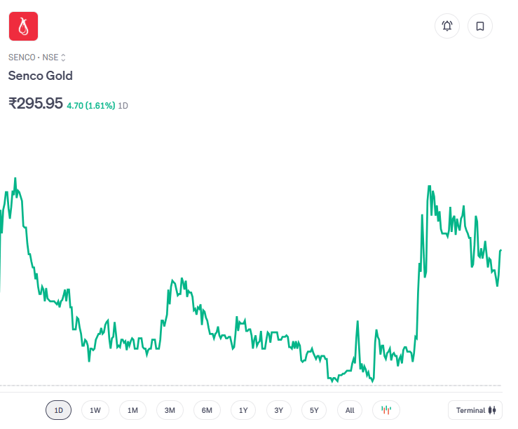 सेंको गोल्ड भी एक बड़ी ज्वेलरी कंपनी है जो सोना और डायमंड ज्वेलरी बेचती है. सोने की कीमत कम होने से बिक्री बढ़ती है और खास बात यह है कि ग्राहक डायमंड ज्वेलरी की ओर ज्यादा आकर्षित होते हैं. डायमंड ज्वेलरी पर कंपनियों को ज्यादा मुनाफा मिलता है, जिससे सेंको गोल्ड की कमाई बेहतर हो सकती है. सोने की कीमतों में गिरावट के बाद शुक्रवार को 1.6 फीसदी से अधिक की तेजी आई. इस तेजी के बाद शेयर का भाव 295 रुपये से अधिक हो गया. हालांकि बीते एक महीने में इसमें 13 फीसदी से अधिक की गिरावट दर्ज की गई है. वहीं जब से कंपनी बाजार में लिस्ट हुई है तब से अब तक लगभग 38 फीसदी तक रिटर्न दिया है.