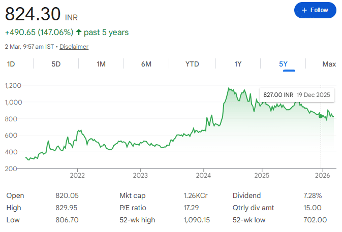इस शेयर को कुछ खास मानकों के आधार पर चुना गया है. इसमें डिविडेंड यील्ड 2% से ज्यादा है. कंपनी का payout ratio 100% से कम है. पिछले कुछ सालों में मुनाफा बढ़ा है. साथ ही कंपनी का मार्केट कैप 1,000 करोड़ रुपये से ज्यादा है.