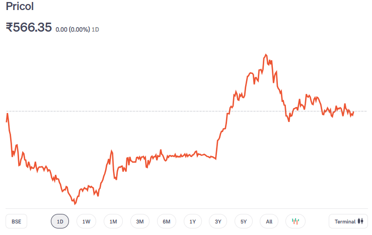 शेयर बाजार बंद होने से पहले शुक्रवार को प्रिकॉल लिमिटेड के शेयर 9.42% की दमदार तेजी के साथ 566.35 रुपये के भाव पर बंद हुए, जबकि पिछले कारोबारी सत्र में यह 517.60 रुपये के भाव पर बंद हुए थे. इस शेयर ने पिछले 5 साल में 1000 फीसदी से अधिक का रिटर्न दिया है.