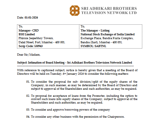 कंपनी ने एक्सचेंज फाइलिंग में बताया कि 6 जनवरी 2026 को बोर्ड ऑफ डायरेक्टर्स की मीटिंग आयोजित की जाएगी, जिसमें इक्विटी शेयरों के सब-डिवीजन यानी स्टॉक स्प्लिट के प्रस्ताव पर विचार किया जाएगा. इस घोषणा के बाद निवेशकों में उत्साह बढ़ गया, जिससे शेयर में अपर सर्किट लगा. 2 जनवरी को भी निवेशकों की नजर इस पर रहेगी.