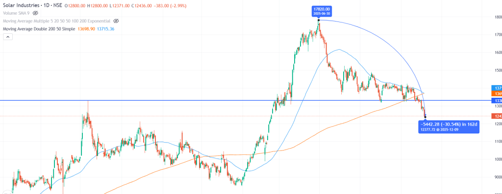 Solar Industries – सेक्टर मजबूत, लेकिन यह पहले टूट गया