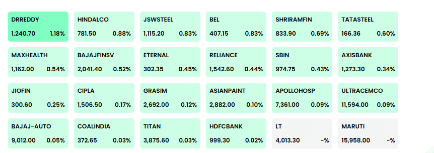 हफ्ते के दूसरे कारोबारी दिन, बाजार में उतार-चढ़ाव देखने को मिला. निफ्टी में Max Healthcare, Dr Reddys Labs, Asian Paints, Titan Company और SBI प्रमुख गेनर रहे. वहीं SBI Life Insurance, Reliance Industries, ICICI Bank, Tech Mahindra और Trent दबाव में रहे. सेक्टोरल इंडेक्स में मेटल शेयरों में तेजी देखने को मिली.