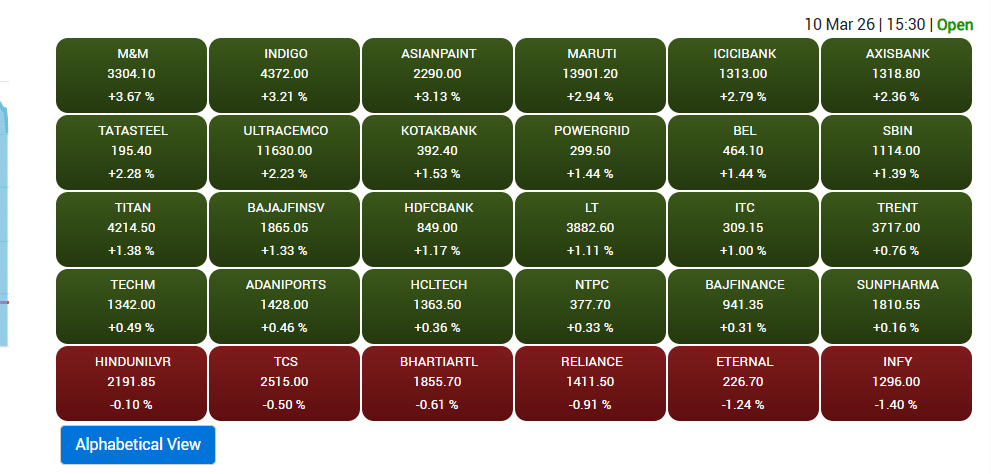 निफ्टी इंडेक्स में सबसे ज्यादा बढ़त वाले शेयरों में श्रीराम फाइनेंस, इंटरग्लोब एविएशन, आयशर मोटर्स, टाटा मोटर्स (पैसेंजर व्हीकल) और महिंद्रा एंड महिंद्रा (M&M) शामिल रहे. वहीं दूसरी ओर इन्फोसिस, इटरनल, भारती एयरटेल, ओएनजीसी और रिलायंस इंडस्ट्रीज निफ्टी के टॉप गेनर वाले शेयरों में रहे.