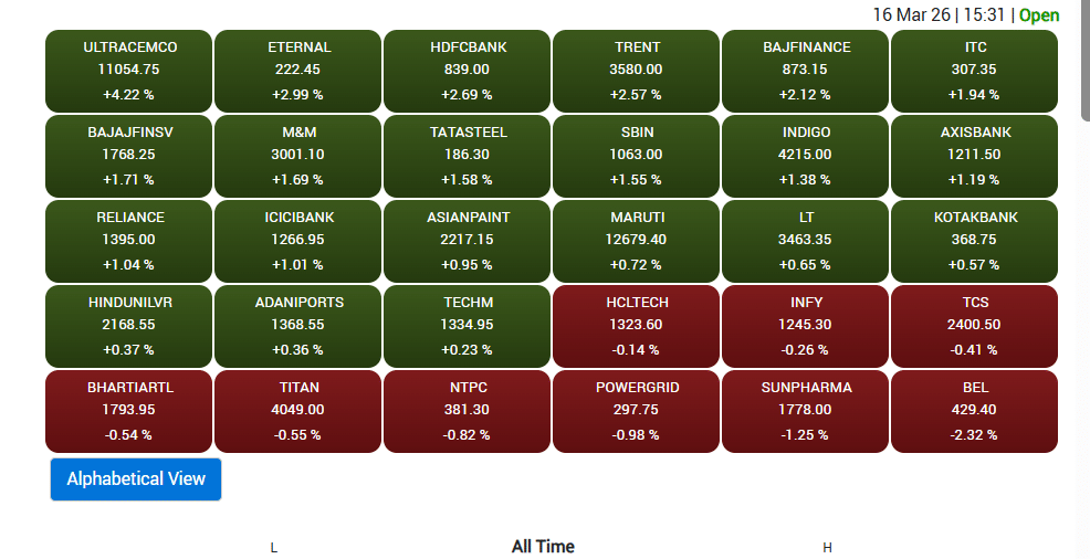 ग्लोबल मार्केट से भी पॉजिटिव संकेत मिले. 16 मार्च को Nasdaq फ्यूचर्स करीब 0.7 फीसदी तक चढ़े, जबकि Dow Jones Industrial Average और S&P 500 के फ्यूचर्स में क्रमशः 0.54 फीसदी और 0.66 फीसदी की बढ़त देखी गई.
