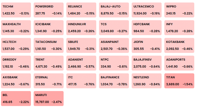 सेंसेक्स के 30 में से 25 शेयरों में गिरावट दर्ज की गई. वहीं, भारत इलेक्ट्रॉनिक्स का शेयर करीब 4 फीसदी की बढ़त के साथ चमका. दूसरी ओर, जोमैटो, NTPC और कोटक बैंक के शेयरों में 3.5 फीसदी तक की गिरावट रही.