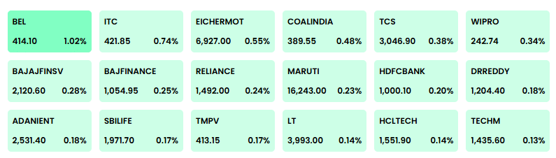 शुक्रवार को सेक्टोरल इंडेक्स में मिला-जुला रुझान देखने को मिला. निफ्टी ऑटो, IT, FMCG, रियल्टी, PSU बैंक और कंज्यूमर ड्यूरेबल्स इंडेक्स हरे निशान में कारोबार कर रहे थे. वहीं दूसरी ओर, निफ्टी बैंक, फाइनेंशियल सर्विसेज, मीडिया, मेटल और फार्मा सेक्टर पर दबाव देखने को मिला. ब्रॉडर मार्केट में भी हल्की मजबूती दिखी. निफ्टी मिडकैप 100 इंडेक्स में 0.1 फीसदी और निफ्टी स्मॉलकैप 100 इंडेक्स में 0.3 फीसदी की बढ़त दर्ज की गई.