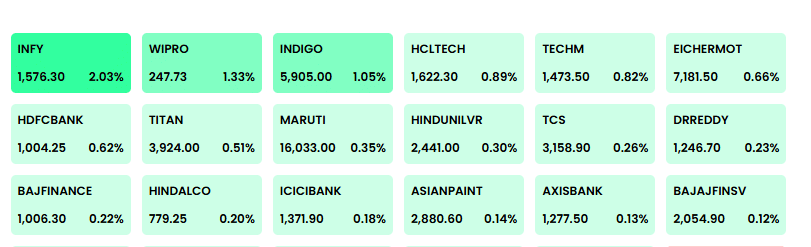 Stock Market Opening Bell: पॉजिटिव ग्लोबल संकेतों के बीच 24 नवंबर को भारतीय बाजार हाईर ओपन हुए. सेंसेक्स 144 अंक चढकर 85,376 पर पहुंचा, जबकि निफ्टी 36 अंक की तेजी के साथ 26,104 के स्तर पर खुला. करीब 1115 शेयर बढे, 1342 शेयर गिरे, और 225 शेयर बिना बदलाव के रहे. निफ्टी में Tech Mahindra, Hindalco Industries, TCS, Dr Reddys Labs और ICICI Bank प्रमुख गेनर रहे. वहीं Reliance Industries, SBI Life Insurance, Trent, Apollo Hospitals और Cipla में कमजोरी दिखी. कारोबार के दौरान आईटी शेयरों में गजब की तेजी देखने को मिली.