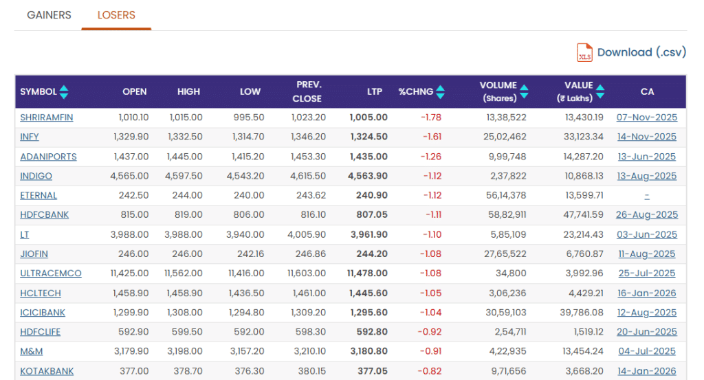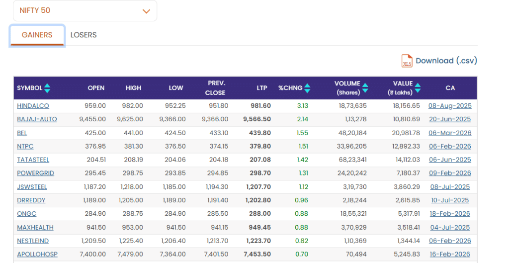 टॉप गेनर्स और लूजर्स