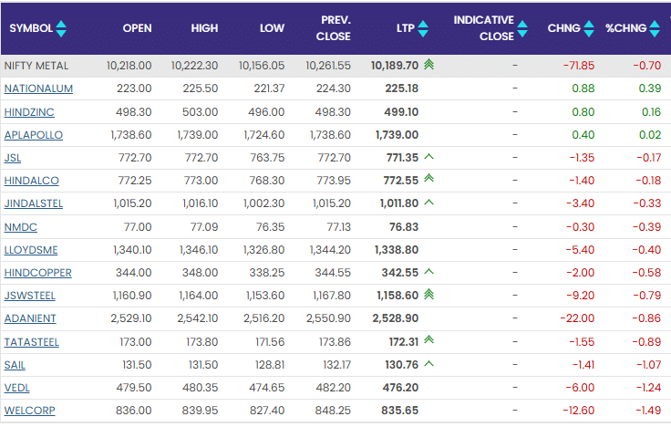 निफ्टी मेटल में 3 शेयर चढ़े तो 12 शेयर गिरे