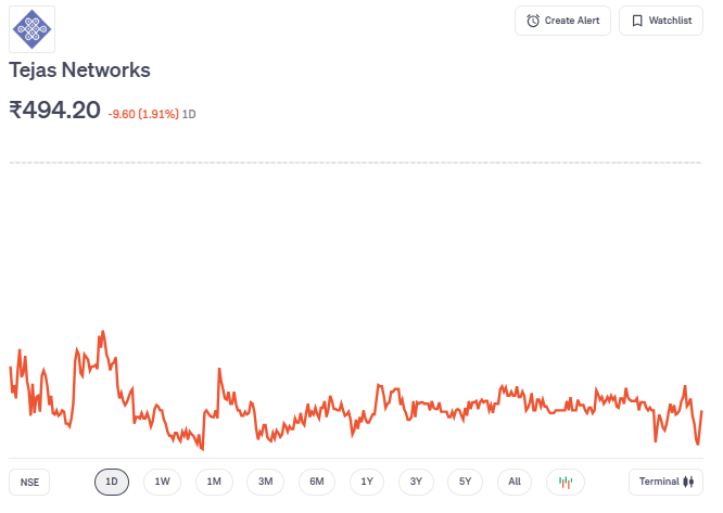 तेजस नेटवर्क्स टाटा ग्रुप की कंपनी है जो नेटवर्किंग और ब्रॉडबैंड के सामान बनाती है. इसका मार्केट कैप 8,754 करोड़ रुपए है. शेयर 1,403 रुपए के हाई से गिरकर अब 494 रुपए पर कारोबार कर रही है यानी 64 फीसदी से अधिक तक गिरावट के साथ कारोबार कर रही है. कंपनी का रिटर्न ऑन इक्विटी (ROE) -12.26 फीसदी है. पिछले 10 साल में बिक्री हर साल औसतन 34.8 फीसदी बढ़ी है. इसके शेयर में पांच साल में 380 फीसदी की तेजी दर्ज की गई है.