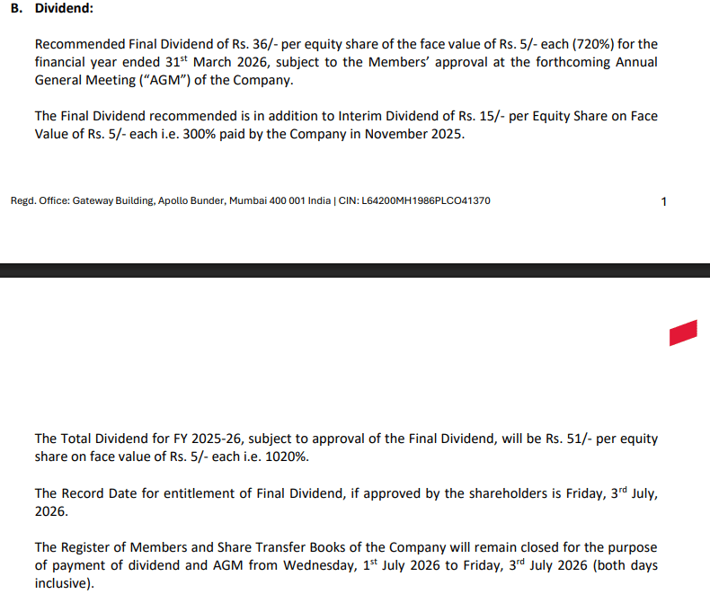 कंपनी ने फाइनल डिविडेंड के लिए 3 जुलाई 2026 को रिकॉर्ड डेट तय की है. यानी जिन निवेशकों के पास इस तारीख तक टेक महिंद्रा के शेयर होंगे, वे इस डिविडेंड के हकदार होंगे. इसके अलावा, कंपनी ने जानकारी दी है कि 1 जुलाई से 3 जुलाई 2026 तक रजिस्टर ऑफ मेंबर्स और शेयर ट्रांसफर बुक बंद रहेंगे. AGM में मंजूरी मिलने के बाद यह डिविडेंड 14 अगस्त 2026 तक या उससे पहले निवेशकों के खाते में ट्रांसफर कर दिया जाएगा.