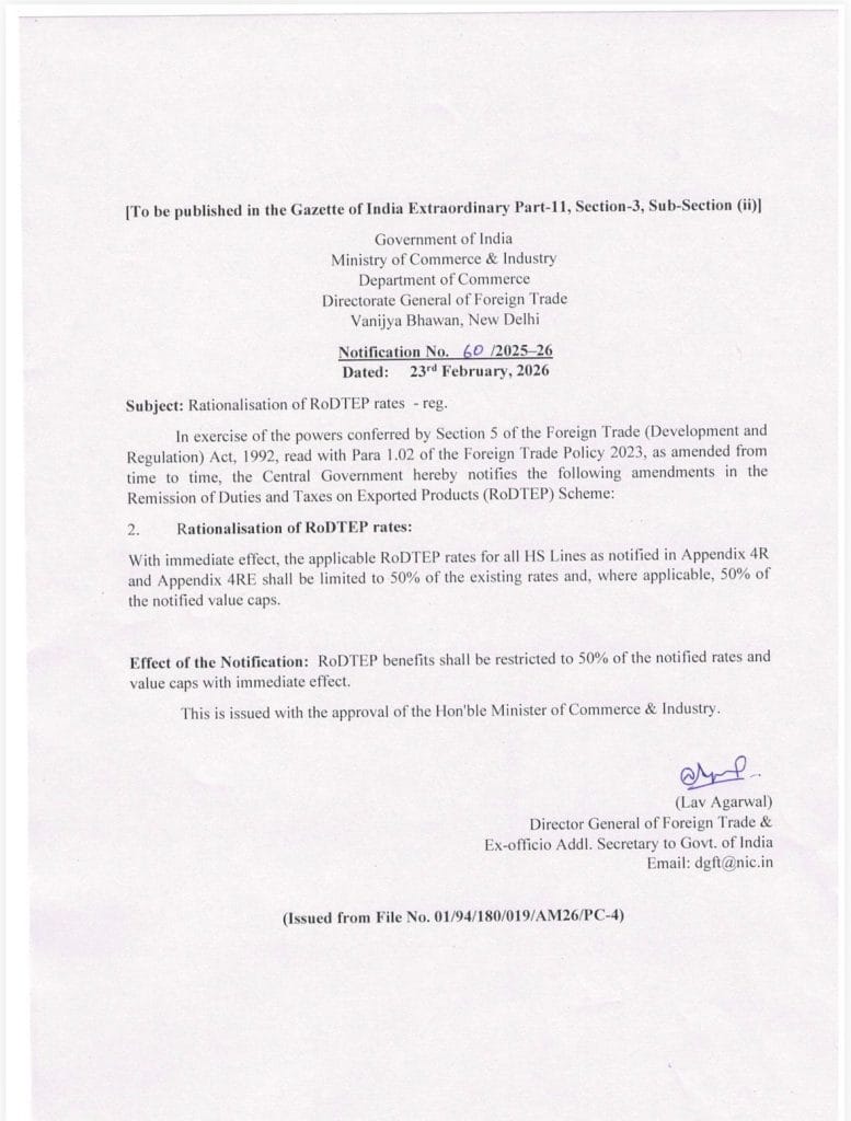 RoDTEP योजना के तहत निर्यातकों को उत्पादन और वितरण के दौरान चुकाए गए उन टैक्स और ड्यूटी का रिफंड मिलता था जो किसी अन्य व्यवस्था के तहत वापस नहीं मिलता. पहले यह रिफंड निर्यात मूल्य के करीब 0.3% से 4.3% तक होता था जिसे अब घटाकर लगभग 0.15% से 2.15% कर दिया गया है. इससे निर्यात करने वाली कंपनियों की लागत बढ़ने और मार्जिन पर दबाव आने की आशंका है.