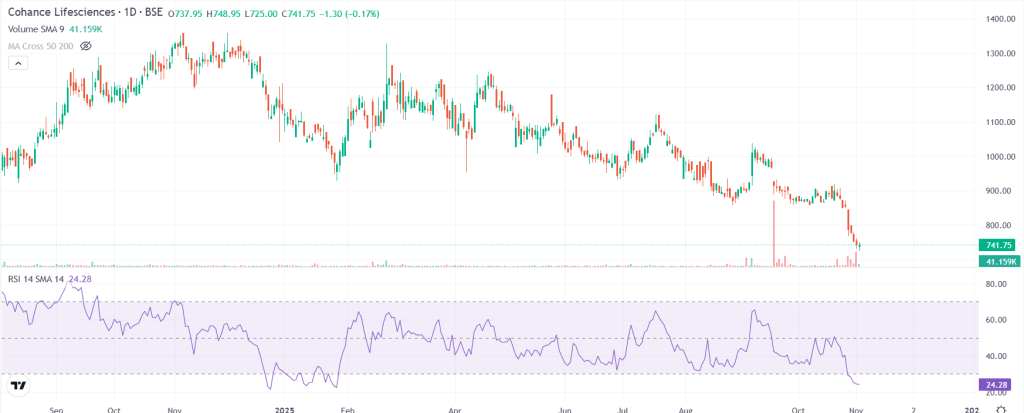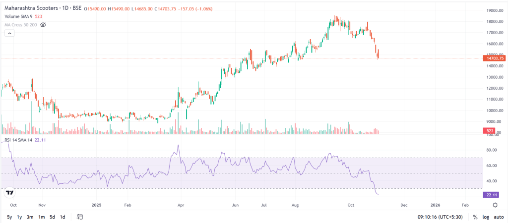 - RSI 22.11 से नीचे है, जिससे संकेत मिलता है कि स्टॉक ओवरसोल्ड जोन में है और इसमें शॉर्ट-टर्म बाउंस की संभावना हो सकती है.
