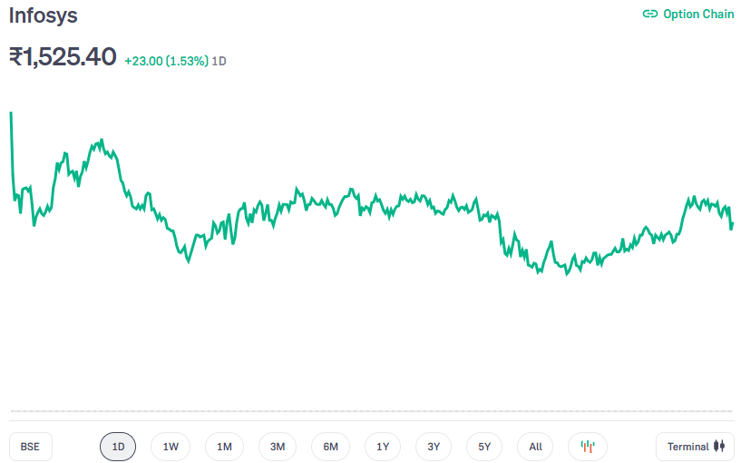 FY24–25 में इंफोसिस ने 1,629,900 करोड़ रुपये की नेट सेल्स दर्ज की जबकि Q2 FY26 में कंपनी का रेवेन्यू 444.90 बिलियन रुपये और नेट प्रॉफिट 73.75 बिलियन रुपये रहा. कंपनी का मार्केट कैप 6,33,712 करोड़ रुपये है और इसके शेयर 1525.40 रुपये पर कारोबार कर रहे है.