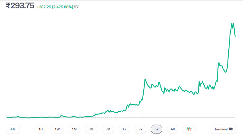 अपोलो माइक्रो सिस्टम्स लिमिटेड ने बीते 5 सालों में निवेशकों को 2,475.88% का मल्टीबैगर रिटर्न दिया है. किसी ने इसमें 1 लाख का निवेश किया होता तो वो अब तक 25.75 लाख रुपये बन चुके होते। कंपनी रक्षा और एयरोस्पेस सेक्टर में सक्रिय है और इसके शेयरों में हाल ही में जबरदस्त तेजी देखी गई है.
