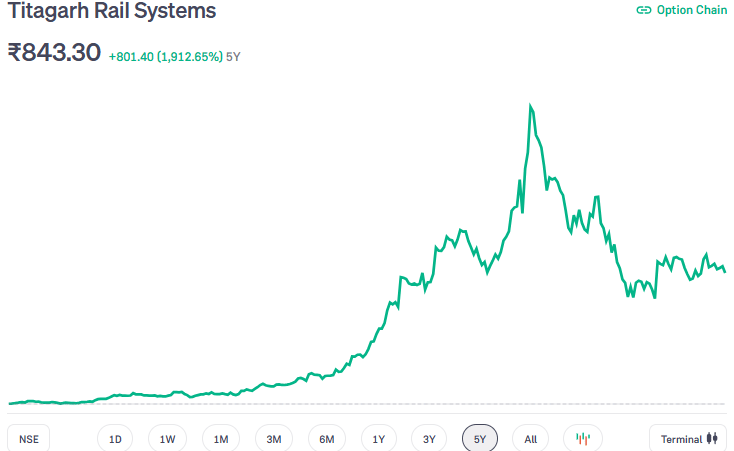 भारत का रेलवे वैगन सेक्टर तेज रफ्तार से बढ़ रहा है. ऐसे में टिटागढ़ रेल सिस्टम्स लिमिटेड भी तेजी से आगे निकल रही है. इसके पास करीब 30000 हजार करोड़ का ऑर्डर बुक है जिसमें हाल ही में मुंबई मेट्रो लाइन 5 के लिए मिला 2,481 करोड़ रुपये का कॉन्ट्रैक्ट शामिल है. निवेशक इस शेयर पर नजर रख सकते हैं.
