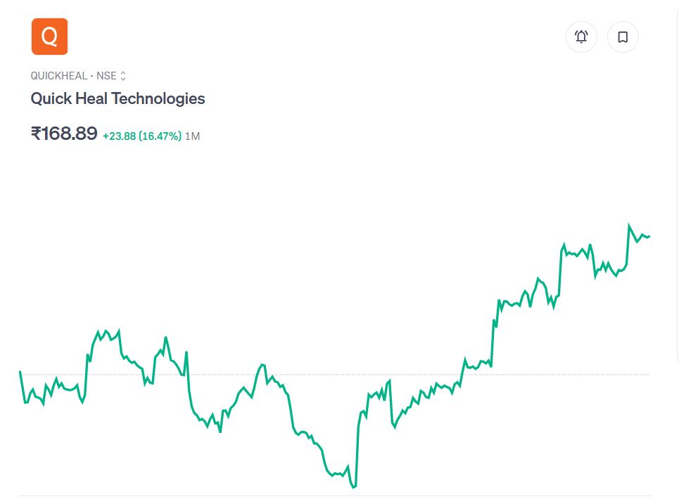 क्विक हील के एक महीने रिटर्न की बात करें तो इसने 17 फीसदी के लगभग रिटर्न दिया है. स्टॉक की मौजूदा कीमत 168 रुपये है.
