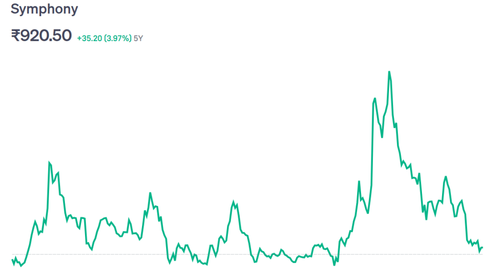 पांचवां नाम है सिम्फनी. दुनिया की सबसे बड़ी एयर-कूलर कंपनी सिम्फनी 60 से ज्यादा देशों में मौजूद है. अब यह केवल घरेलू कूलर तक सीमित नहीं है, बल्कि कमर्शियल और इंडस्ट्रियल सेगमेंट तक फैल चुकी है.