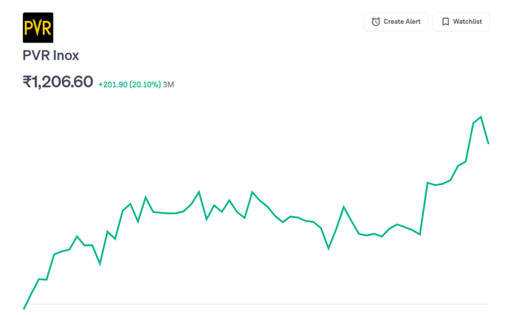 पिछली तिमाही में फिल्मों की कम रिलीज और ज्यादा खर्च की वजह से कंपनी को नुकसान हुआ था, लेकिन Q2 में रिलीज शेड्यूल बेहतर रहा और विज्ञापन व फूड रेवेन्यू ने ग्रोथ में मदद की. बीते 3 महीने में कंपनी के शेयरों ने निवेशकों को 20 फीसदी से ज्यादा का मुनाफा दिया है, बीते शुक्रवार इसके शेयर 1206 रुपये पर बंद हुए.