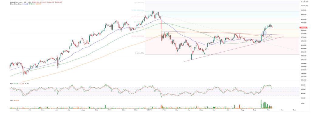 ब्रोकरेज हाउस का कहना है कि अनंत राज लिमिटेड के शेयरों में हाल ही में शानदार तेजी देखी गई है, जिसमें भारी वॉल्यूम का साथ भी मिला है. यह तेजी किसी आकस्मिक उछाल का हिस्सा नहीं, बल्कि एक मजबूत ट्रेंड की ओर इशारा कर रही है. फर्म का मानना है कि स्टॉक फिलहाल सकारात्मक रुझान में बना हुआ है और आने वाले दिनों में इसमें नई तेजी देखी जा सकती है.