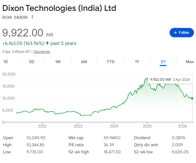 Dixon Technologies इलेक्ट्रॉनिक्स मैन्युफैक्चरिंग में बड़ा नाम है. कंपनी डिस्प्ले मैन्युफैक्चरिंग और सेमीकंडक्टर से जुड़े प्रोजेक्ट्स पर काम कर रही है. इसके लिए बड़े निवेश की योजना भी बनाई गई है.