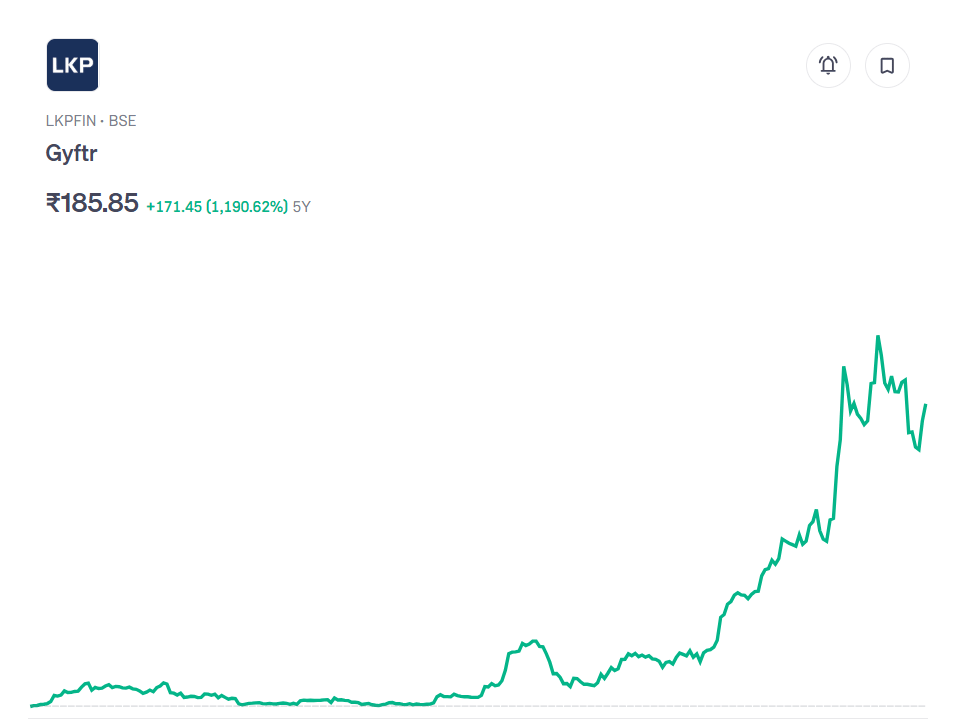 Share Market news: शेयर बाजार में जहां सोमवार को गिरावट का माहौल रहा, वहीं Gyftr Limited (पहले LKP Finance) के शेयर ने अलग ही रुख दिखाया. कमजोर सेंटीमेंट के बावजूद यह मल्टीबैगर स्टॉक करीब 7% चढ़ गया और इंट्राडे में ₹193 तक पहुंच गया. यह तेजी ऐसे समय आई है जब निफ्टी 50 खुद 2% टूटकर नीचे आ गया, जिससे इस स्टॉक की मजबूती निवेशकों का ध्यान खींच रही है.