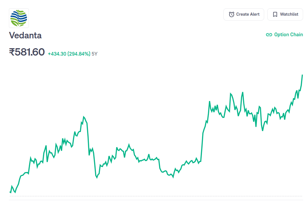 स्टॉक मार्केट के लिहाज से वेदांता का मामला खास है. आमतौर पर जब कंपनियां बड़े डीमर्जर या भारी निवेश योजनाओं की घोषणा करती हैं, तो डिविडेंड पर असर पड़ता है. बीते कारोबारी दिन कंपनी के स्टॉक 581 रुपये पर बंद हुए. वहीं 5 वर्षों में इसने 294 फीसदी के लगभग का रिटर्न दिया है.