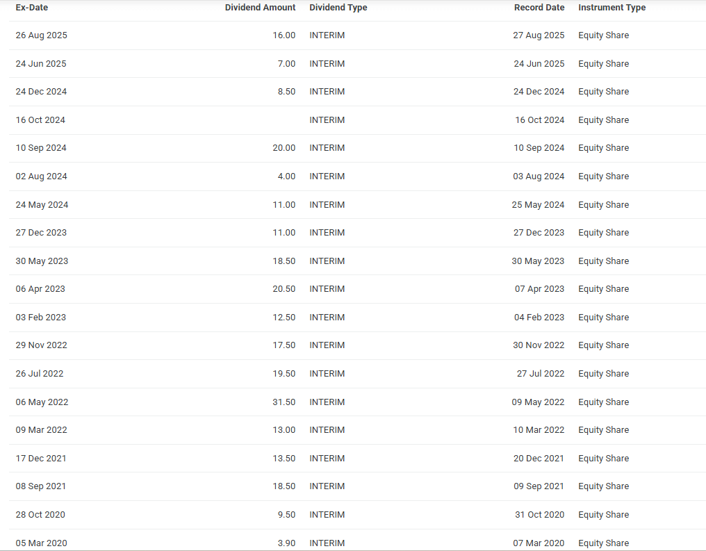 FY 2023-24 में कंपनी ने कुल 29.50 रुपये प्रति शेयर का डिविडेंड दिया, जबकि FY 2024-25 में यह आंकड़ा करीब 46 रुपये प्रति शेयर तक पहुंच गया. चालू वित्त वर्ष 2025-26 में भी अब तक 7 रुपये और 16 रुपये प्रति शेयर के दो इंटरिम डिविडेंड घोषित किए जा चुके हैं. इससे यह संकेत मिलता है कि कंपनी की कैश फ्लो पोजीशन अभी भी मजबूत है.