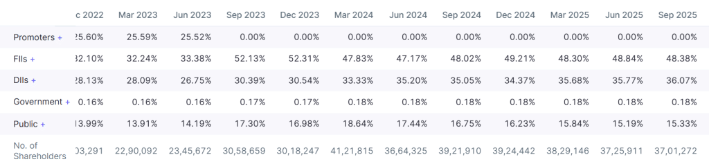 HDFC Bank इसका सबसे बड़ा उदाहरण है. HDFC Ltd के साथ मर्जर के बाद यह पूरी तरह प्रोफेशनली मैनेज्ड बैंक बन गया. आज यह देश का सबसे बड़ा प्राइवेट सेक्टर बैंक है, जिसकी मार्केट कैप 15 लाख करोड़ रुपये से ज्यादा है. मजबूत बैलेंस शीट और स्थिर ग्रोथ इसे निवेशकों की पहली पसंद बनाती है. जून, 2023 के बाद इस कंपनी में प्रमोटर की हिस्सेदारी 25.52 फीसदी से शून्य हो गई. शेयरहोल्डिंग पैटर्न की बात करें तो कंपनी में FIIs की हिस्सेदारी 48.38 फीसदी, DIIs की हिस्सेदारी 36.07 फीसदी, सरकार की 0.18 फीसदी और पब्लिक की 15.33 फीसदी है.