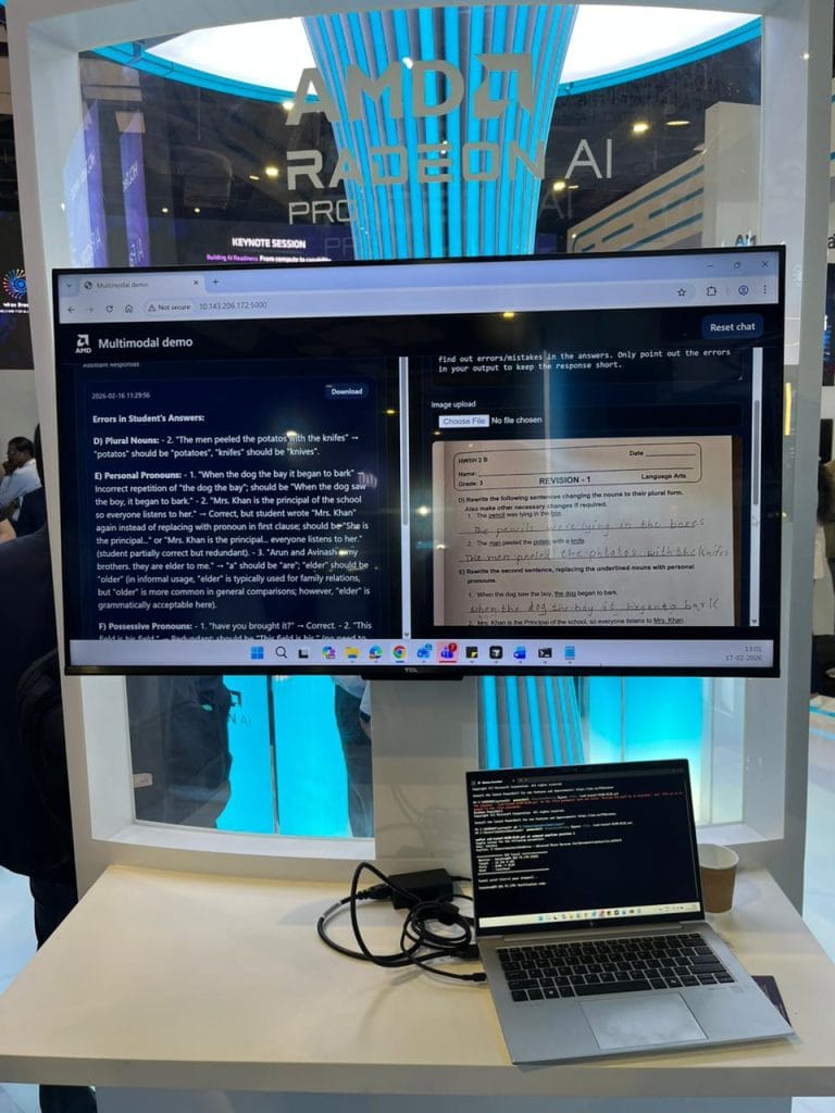 दिल्ली में चल रहे India AI Impact Summit 2026 में AMD Enterprise ने ऐसी AI तकनीक पेश की है जो खुद ही छात्रों के पेपर जांच सकती है. कंपनी के अनुसार यह सिस्टम बड़े AI मॉडल और हाई पावर GPU पर काम करता है, जिससे हजारों कॉपियां एक साथ तेजी से चेक हो सकती हैं.
