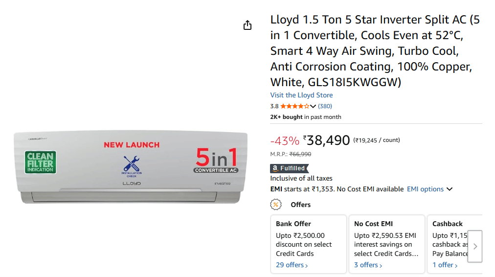 - इन्वर्टर AC: बेडरूम या ऐसे कमरे के लिए बेहतर जहां लगातार और शांत कूलिंग चाहिए.