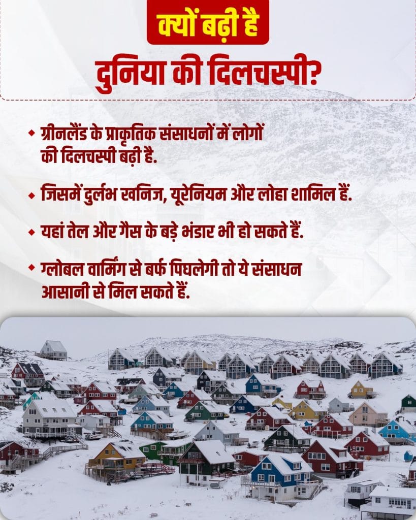 अमेरिकी राष्ट्रपति डोनाल्ड ट्रंप के तीखे बयानों ने ग्रीनलैंड को विश्व के पटल पर सुर्खियों में ला दिया है. ट्रंप का रुख ग्रीनलैंड को लेकर आक्रामक भी नजर आता है और इसके पीछे की तमाम वजहें अंगुलियों पर गिनाई भी जा रही हैं. ग्रीनलैंड की ताकत और खासियतों के वीडियो सोशल मीडिया प्लेटफॉर्म पर पिघलती बर्फ की तरह फैलने लगे हैं और उत्तरी अटलांटिक के इलाके में जियोपॉलिटिकल तापमान चढ़ने लगा है.